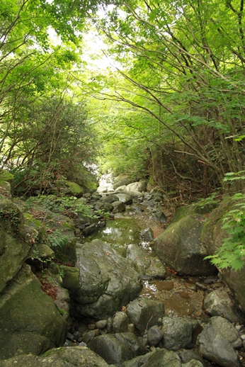 さて、岩を這いつくばってのぼり、少し上流へ。
