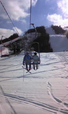 隣のおじさんとリフトのおじさんに腕を持ってもらい連れ去られた宇宙人みたいにリフトの乗り降り。